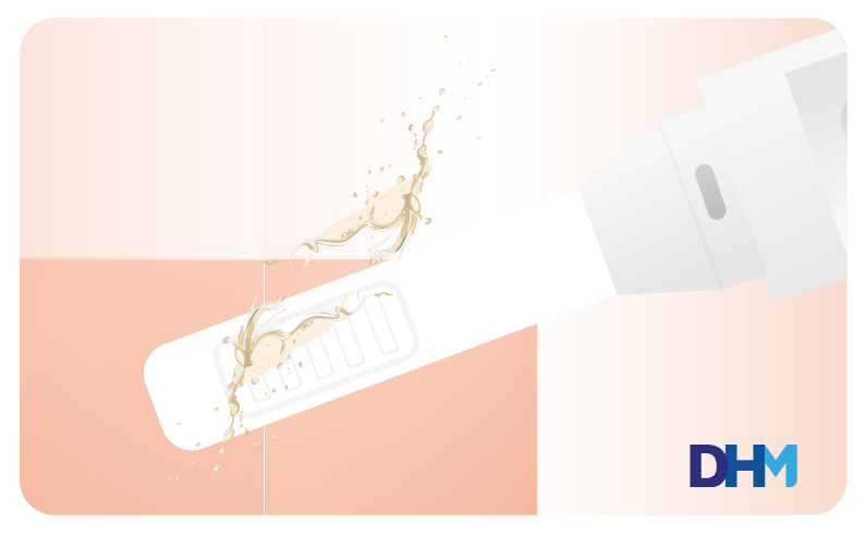 - Retira la tapa y coloca la punta absorbente directamente en el chorro de orina durante al menos 10 segundos.