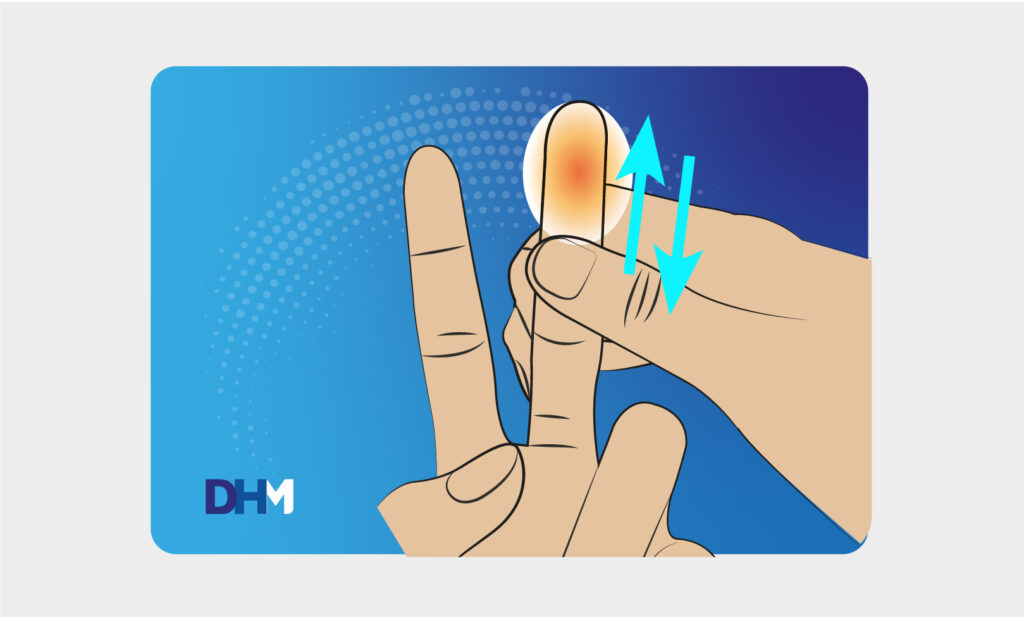 2. Frote el dedo y la mano para aumentar el flujo sanguíneo.