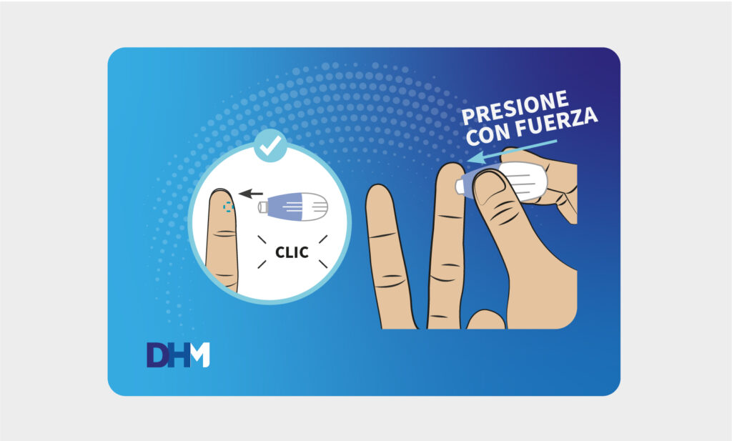 3. Coloque la lanceta en el lado de la punta del dedo.