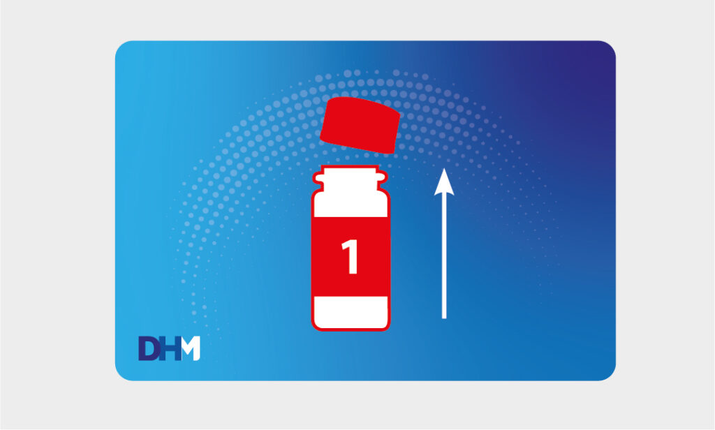 5. Deje CAER 1 gota en el Frasco 1. Enrosque la tapa en el Frasco 1.