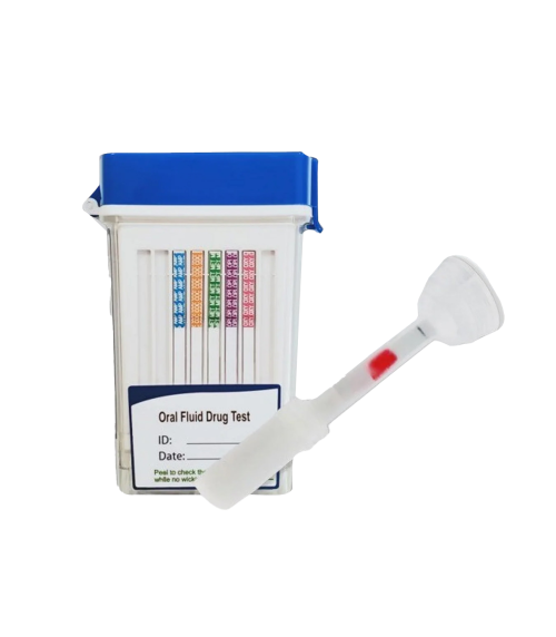 El dispositivo es un cubo de fármacos en fluidos orales para la detección cualitativa de múltiples fármacos y metabolitos de fármacos en el fluido oral.